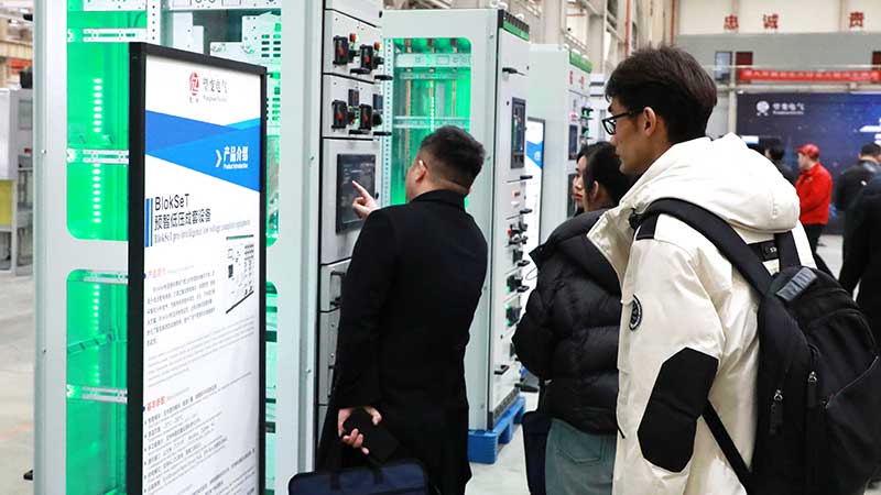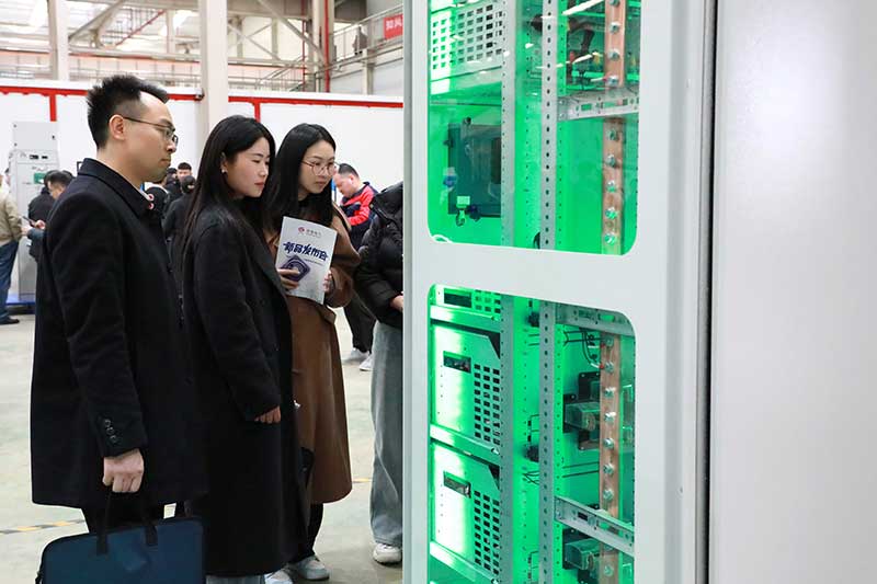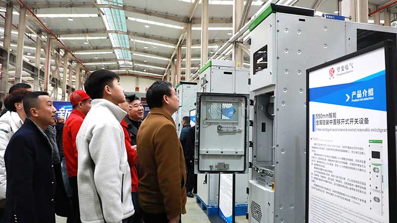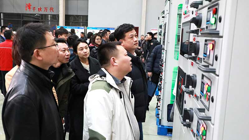 随后,生产车间展厅内,一系列极具科技感的智能配电设备吸引了众多嘉宾驻足观看,工作人员详细介绍了公司在智能配电系统领域的前沿探索与技术突破。嘉宾们零距离观摩新产品的制造过程,深入了解高精度自动化生产线及智能化工艺控制系统。望变电气凭借卓越的制造工艺、严苛的质量管控、智能化的生产流程,为电力行业提供高效、可靠、安全的智能配电设备,展现出雄厚的技术实力和行业影响力。