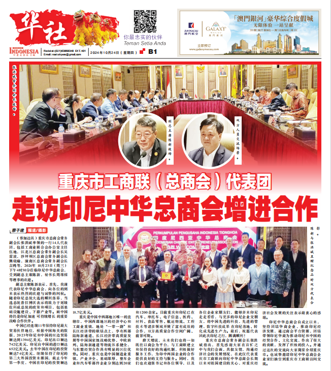 2024年10月23日,重庆望变电气(集团)股份有限公司受重庆市工商联(总商会)代表团邀请出访印尼中华总商会。中国已连续11年保持印尼最大贸易伙伴地位,根据中国海关的数据,2023年印尼和中国的双边贸易额达到1394亿...